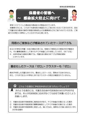 「保護者の皆様へ〜感染拡大防止に向けて〜」(1/7世田谷区教育委員会)