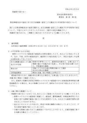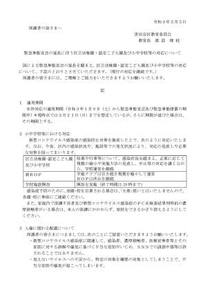 緊急事態宣言延長に伴う対応(世田谷区教育委員会)3月5日