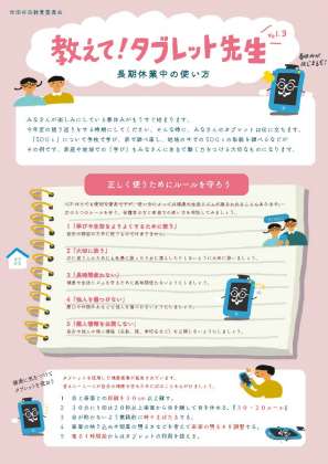 本日、2年生から5年生の児童に、「教えてタブレット先生 第3弾」を配布します。今回は、「春休み活用編」です。