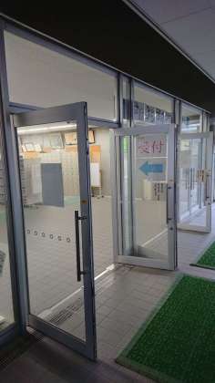 入口(通用門)に警備員が立っていますので、保護者証をお見せになり、マスクを着用の上お入りください。写真にある、第一昇降口にお進みいただき、事務室前の受付に、