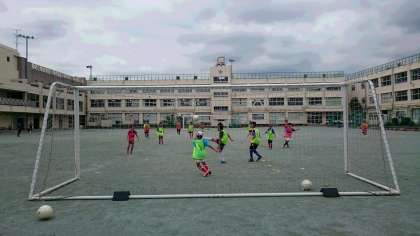 サッカー部の部活動体験がありました。大きな中学校のサッカーゴールでの試合では、小学生もゴールを決めていました!