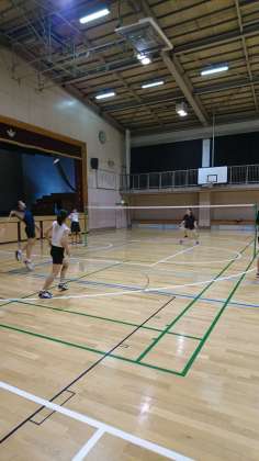 バドミントンでは、基本の打ち方を教えてもらったあと、実践形式の試合も行われました。