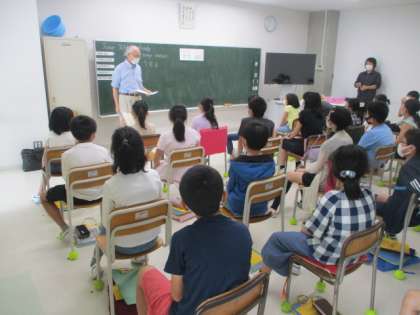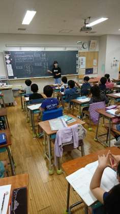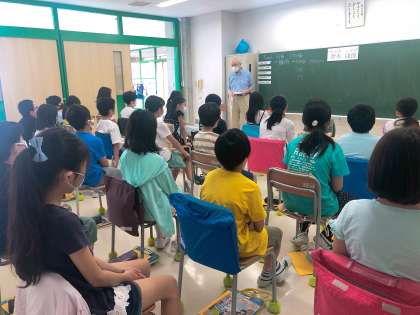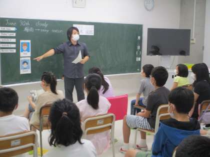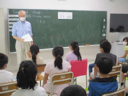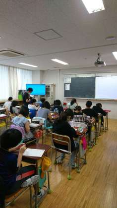 初めは戸惑いながら自己紹介を聞いていましたが、慣れてくるとさすが5年生、先生の英語の質問に次々に答えていました。少しずつ外国語に親しんでいます。 -