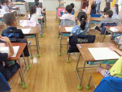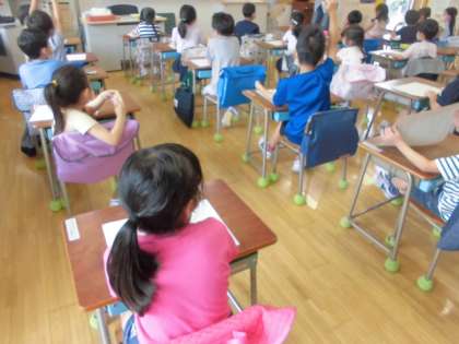 2組では、2時間目に日本語の学習をしました。自分で考えたなぞなぞの問題を、クラスのみんなに出しました。友達が出す問題をよく聞いて、手を挙げて答えていました。