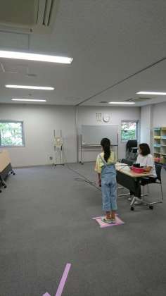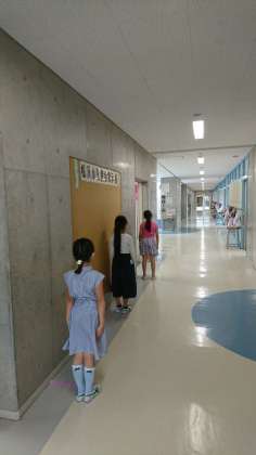 今日は4年生が視力検査をしています。特活室で行っているので、数人ずつ教室から来て並んで待っていました。間隔を十分にあけて並んでいます。