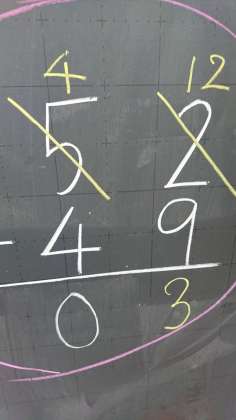教室に入っていくと、「52ー49」の答え合わせをしていました。
