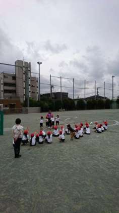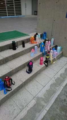 今日はいろいろな「鬼遊び」をしていました。いっぱい走っていました。運動後は、しっかり手洗いと水分補給です。水筒は、屋外の活動には携帯して途中でも適宜水分補給をしています。毎日の水筒のご準備ありがとうございます。 -