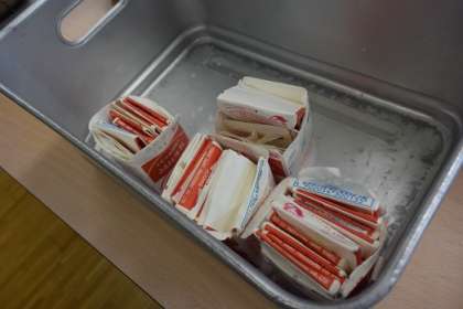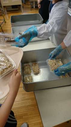 慣れた手つきですばやく準備していく姿はさすが高学年!今年度スタートした牛乳パックをたたむ作業も慣れてきました。担任だけで行っていた先週よりもずっと早く準備、片付けをしていました。
