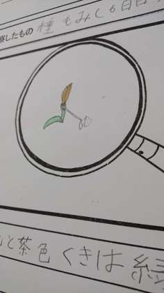 反対側には、稲の観察の記録もありました。先日、種籾をみんなで見ていましたが、もう発芽したんですね。観察カードは、みんなとてもよくかけていました。 -