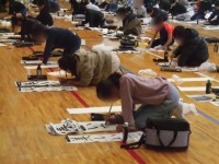 今日は体育館で3年生と4年生が書き初めを行いました。3年生は「つよい力」、4年生は「美しい空」と毛筆で書きます。姿勢を正しく、筆の持ち方にも注意してゆっくりと筆を動かしました。ひらがなと漢字のバランス...