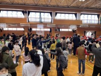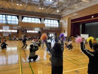 交流会が始まりました。「猛獣狩り」では、他の学校の友達とグループをつくることができました。「かぜおこせ」は明正小が担当のダンスです。みんなをリードして元気に踊ることができました。