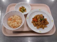 【献立】 牛乳 鮭ごはん 鶏肉と野菜の揚げ煮 白菜のおかかあえ【主な食材と産地】 しょうが 高知県 じゃがいも 北海道 たまねぎ 北海道 にんじん...