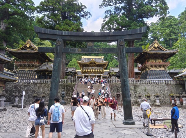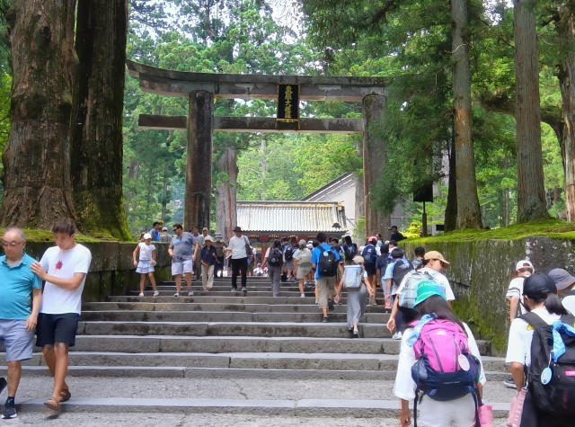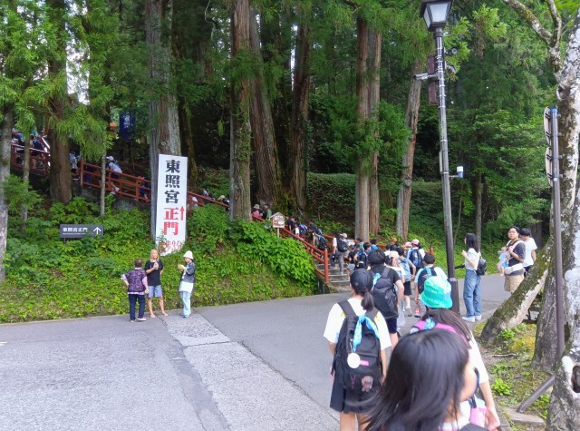東照宮に着きました。集合写真を撮ってから、グループ行動を始めました。陽明門、眠り猫、鳴龍などを見学したり、家康の墓をお参りしたりしました。昨日は同じ時間に土砂降りの雨だったそうです。