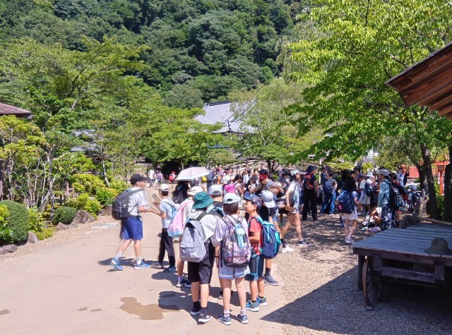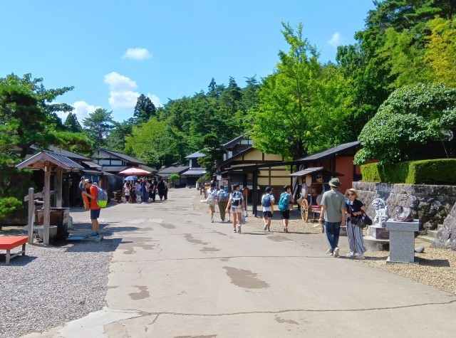 無事に日光江戸村に到着しました。到着が早いので、空いています。活動班ごとに江戸の村を回っています。