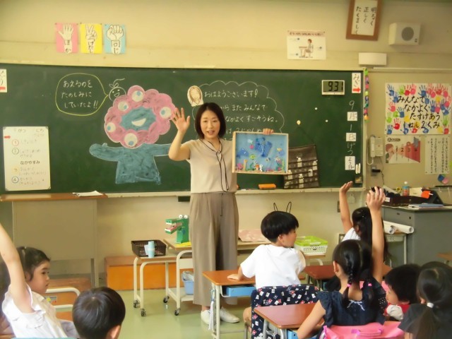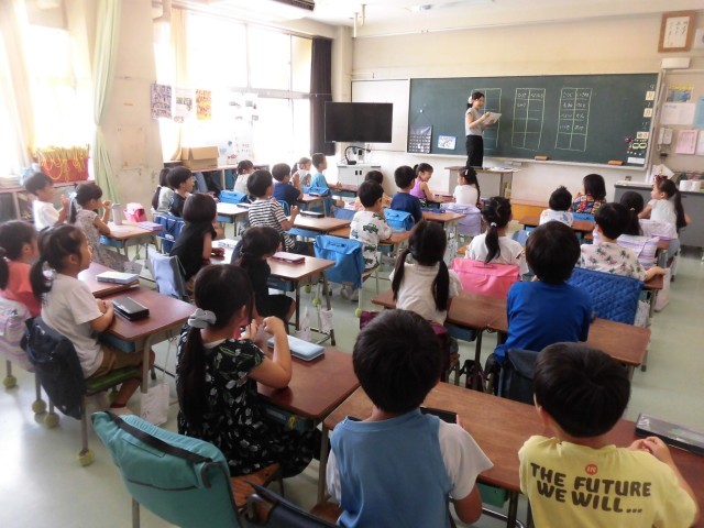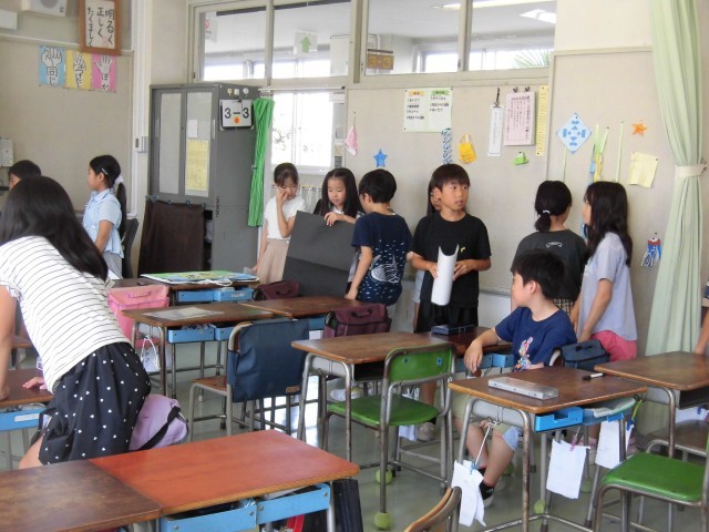 1時間目の始業式を終えて、2時間目は多くのクラスで学活が行われました。宿題を列に並んで提出するクラス、友達の作った自由研究をみんなで鑑賞するクラス、教員が発表する席替えに盛り上がるクラスなど新学期が始まったなあと感じる光景が見られました。暑さ指数が基準を下回っていた中休みには、元気に外遊びをする児童で校庭がいっぱいになりました。久しぶりに友達と遊べたことがとても嬉しそうでした。