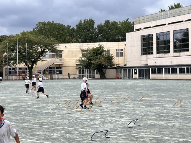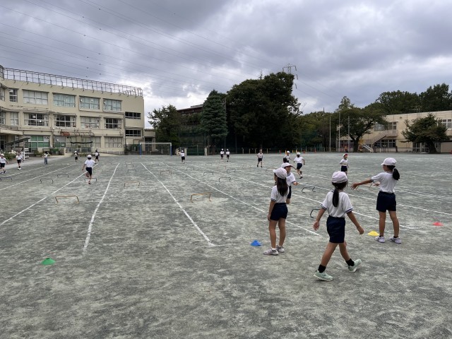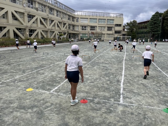 3年生は体育で小型ハードルを使って、リズムよく走り越える運動をしています。気温も下がり、全力で走る子どもたちはとても楽しそうです。「スポーツの秋」がやってきたようです。