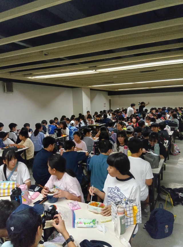 6年生は、体験プログラムの後にバスで移動して科学技術館に着きました。今、休憩室で昼ご飯を食べています。保護者の皆様、お弁当の準備など、ありがとうございます。
