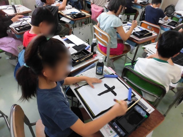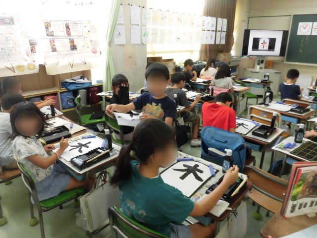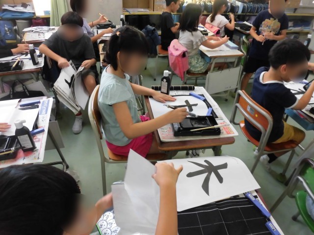 3年生の書写で「木」の漢字の練習をしました。右はらいと左はらいの学習です。太く入ってだんだん細くなっていく筆づかいを丁寧にゆっくりと練習しました。強くてしっかりとした「木」を書くことができました。3年生から始まった毛筆の学習もだんだん慣れてきました。自分の名前も何度も練習する様子がみられました。