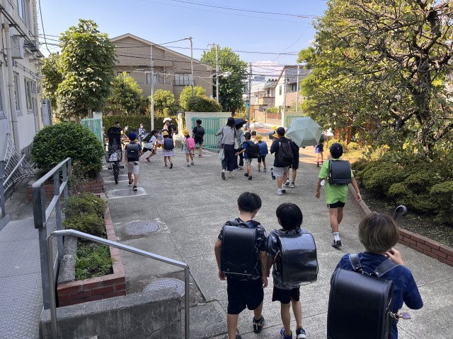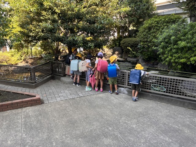 下校時間になると、子どもたちが元気に校舎を出ていきます。友達とおしゃべりをしたり、池の魚を眺めたり楽しそうです。放送委員の子が下校の放送をかけてくれます。自分の役割りがしっかり果たしてくれてうれしいです。明日も元気に登校してくれるのを待っています。