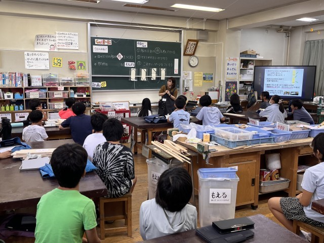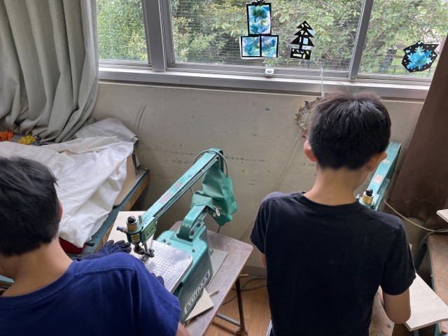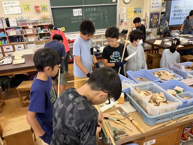 5年生は図工で木工作に取り組んでいます。1枚の板からイメージを広げ、自分だけの表したい形を作っていきます。電気ノコギリや金やすりなどを使う時には、特にケガをしないように気を付けています。二階建てにしたり窓をつけたりとイメージが膨らんでいるようです。どんな船が出来上がるでしょう、楽しみです。