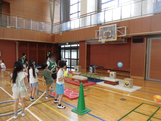 運動委員会が企画した「投げる~んキャンペーン」が始まりました。運動委員会のメンバーで、ボールを使ってみんなが楽しく運動できる遊びを考えました。今日は1年生を対象に、昼休みには体育館で的あてなどのコーナーが設置されました。たくさんの1年生が参加し、汗を流して遊びました。運動委員会のメンバーがルールを説明したり、ボール拾いやボール遊びを積極的に行いました。1年生も思いっきりボールを投げて遊ぶことができました。