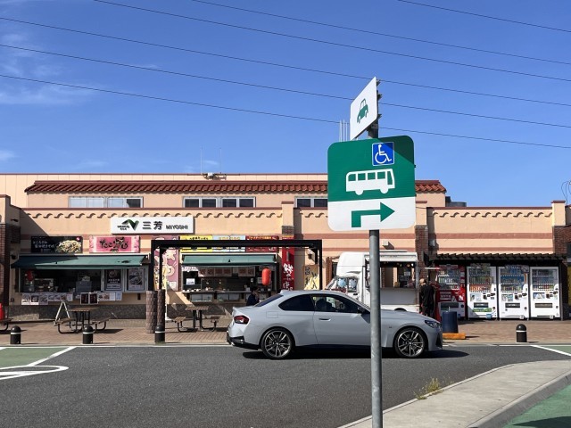 関越高速の三芳サービスエリアに着きました。周りの車に気を付けて安全に行動できています。立派です。