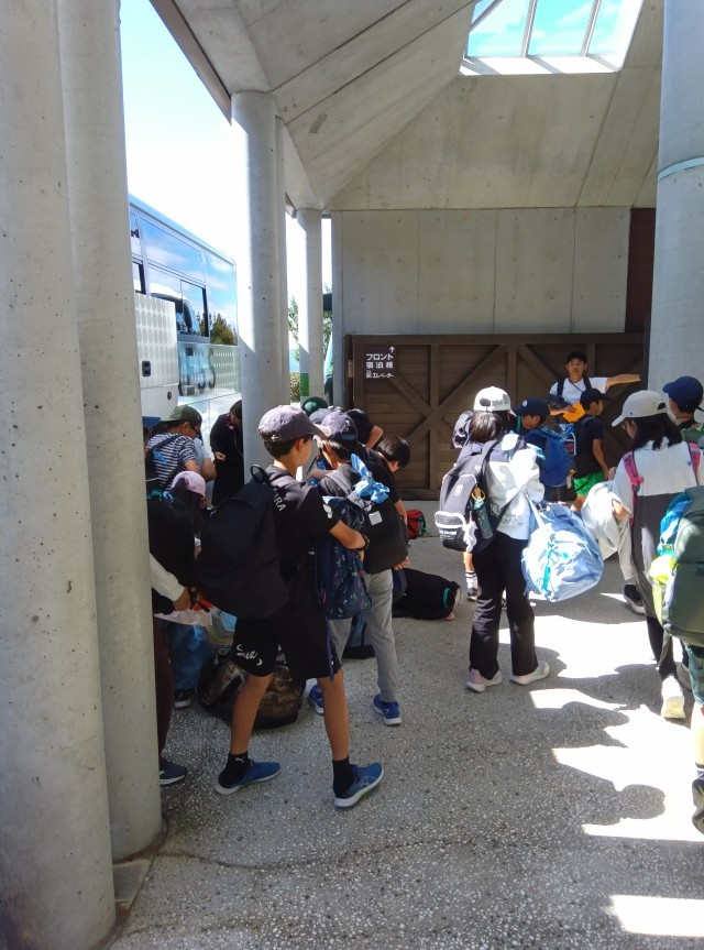 川場村のビレジに到着しました。子どもたちは、テンションが上がっています。到着するまでに窓からたくさんのりんごや田園プラザが見えると大歓声があがりました。開室式で子どもたちは、ビレジの方の話を聞いています。感謝の思いを大切に、3日間過ごしたいです。