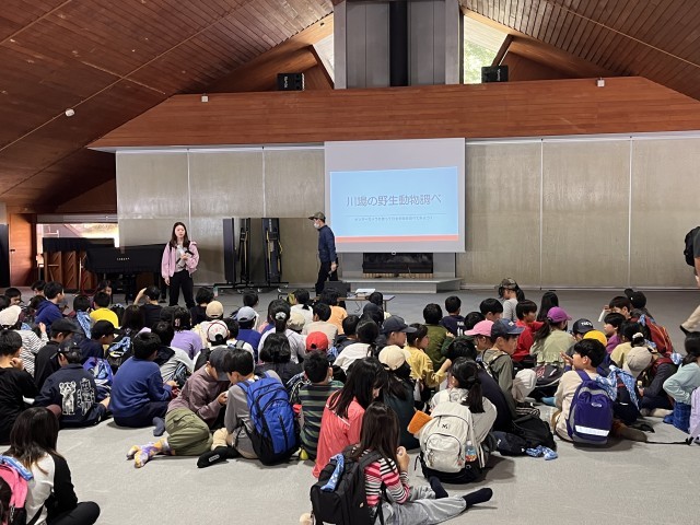 各部屋に入りました。歓声がたくさん聞こえてきます。避難訓練をした後は、野生動物観察プログラムが始まりました。