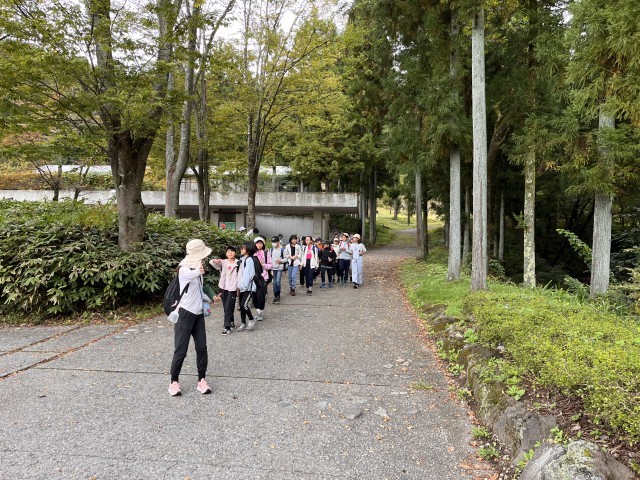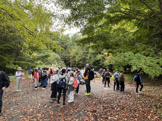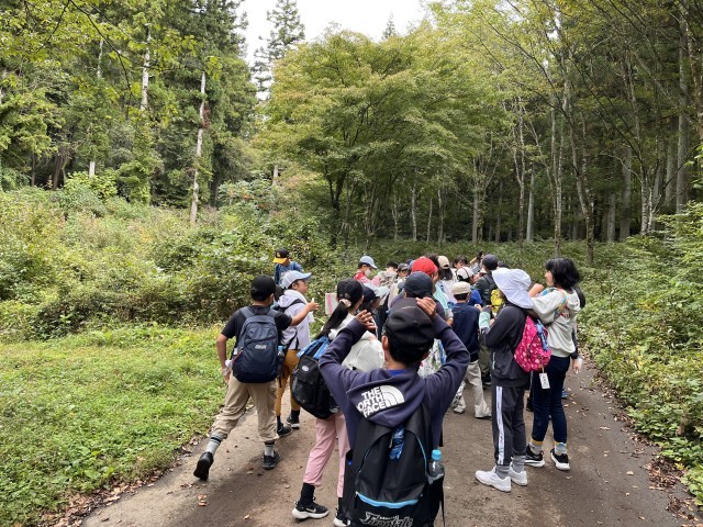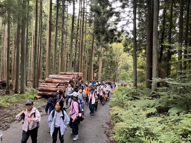 ハイキングに出発しました。21世紀の森を歩きます。鳥の声が聞こえたり森の香りがしたりします。元気にゴールを目指しました。