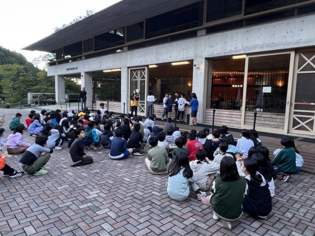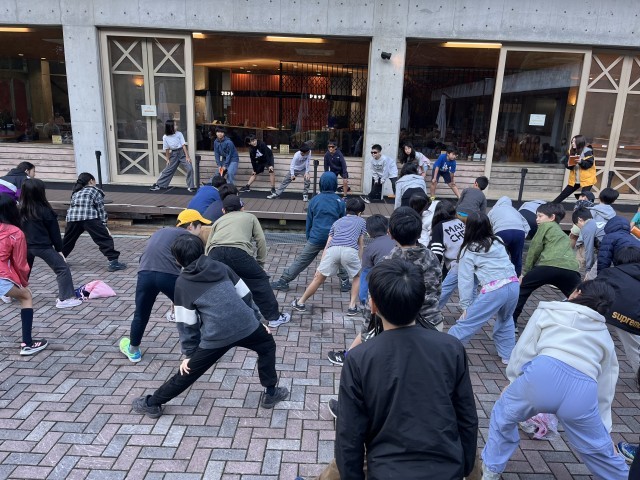 3日目が始まりました。「寒い」と聞こえるような気温ですが、晴れています。朝会が始まり、運動して体をほぐしました。
