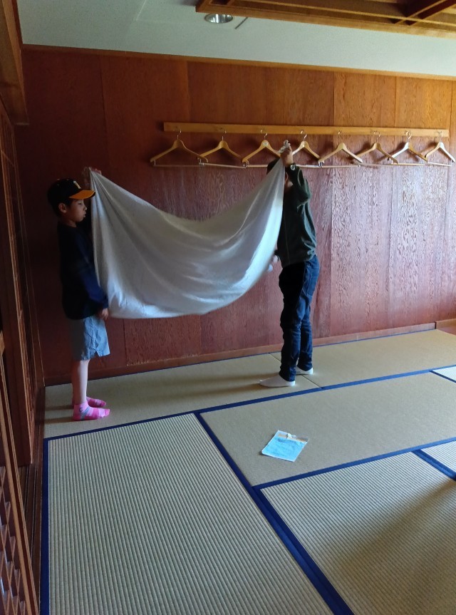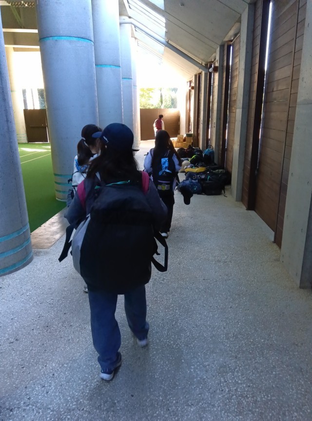 子どもたちは部屋の片付け、荷物整理をして、先生の最終チェックで合格した班から移動しました。これから野生動物観察の確認と閉室式です。