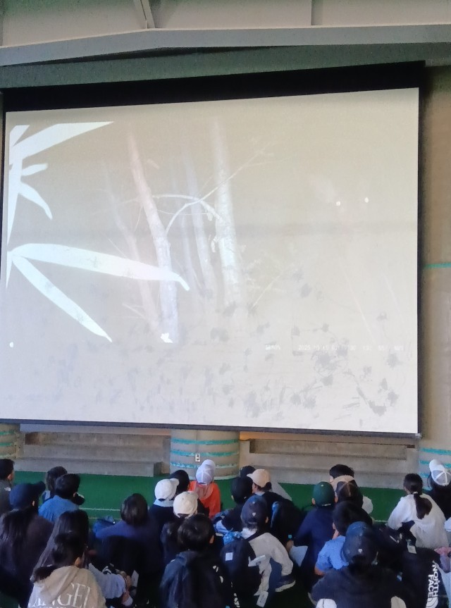 野生動物観察の確認結果が発表されました。クラスごとに決めた場所に設置したカメラには、85本もの過去最多の動画が撮影されていて、シカとアナグマがうつっていました。子どもたちは、大喜びでした。ビレジの方からは、最近なかのビレジの周辺には、シカが多くなってきて、それとともにヒルも多くなってきている、という話を聞きました。