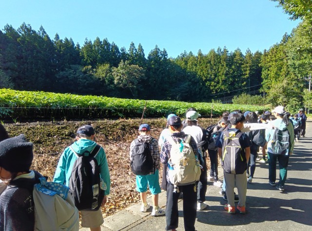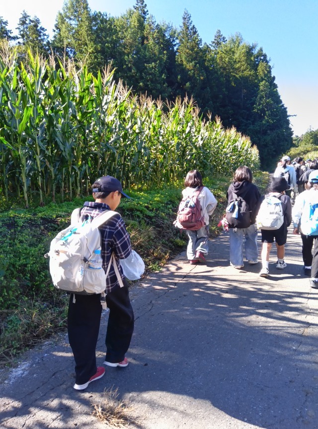 村めぐりが始まりました。こんにゃくいも畑やとうもろこし畑を見たり、トラックの体重計に乗ったりしています。