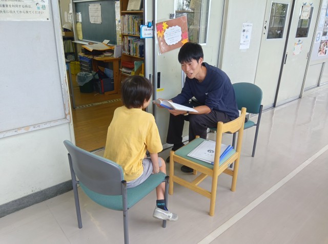本日、1年生〜4年生・6年生に前半の通知表を渡しました。一人ずつ、励ましの言葉をかけて手渡しました。真剣に先生の話に耳を傾けていました。