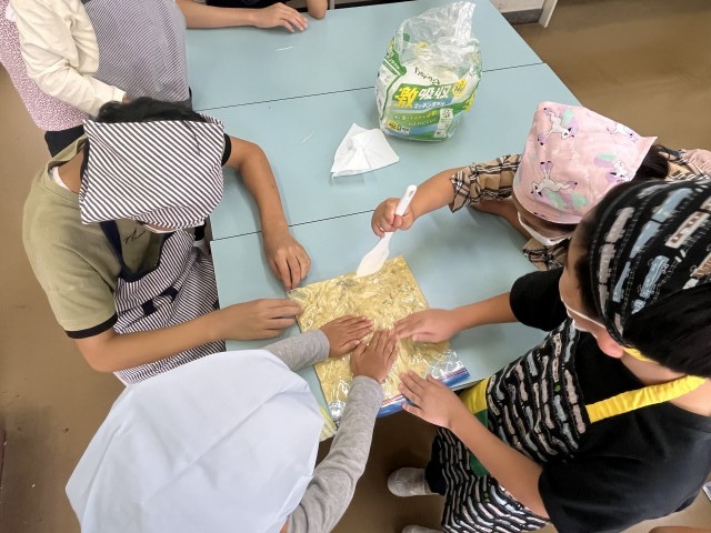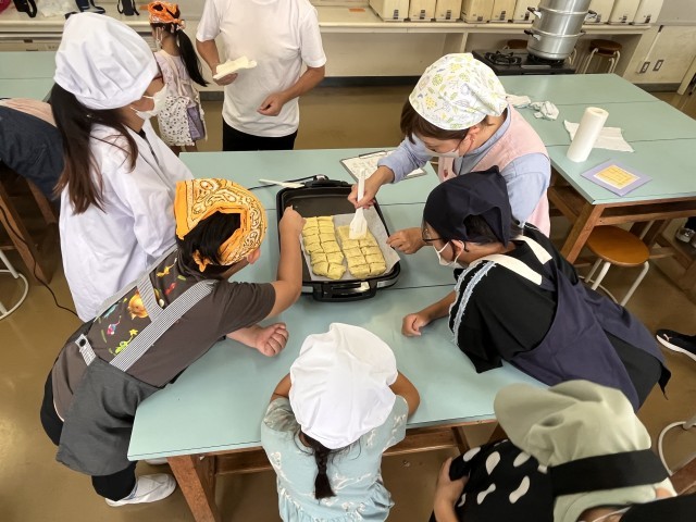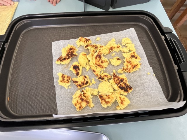 ひまわり学級では調理実習をしました。作るものはスイートポテトです。材料のサツマイモは、先日自分たちで掘った物ですがだんだんと甘いいいにおいがしてきました。