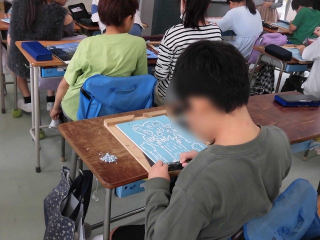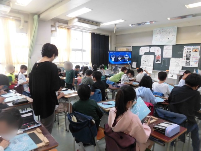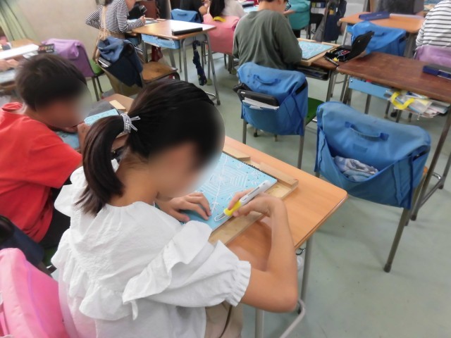 4年生の図工では「彫って表す不思議な花」の作品を制作しています。自分の想像した花を、彫刻刀を使って木版画にして表現します。彫刻刀の特徴を生かし、刷った時に白くなる部分を考えながら、思い思いの花のデザインを彫っていきます。彫刻刀の使い方にも慣れてきて、安全に気を付けて作業を進め、今日は版を作ることができました。彫刻刀の使い方について、友だちどうしでコツを話したり、アドバイスしあう様子も見られました。