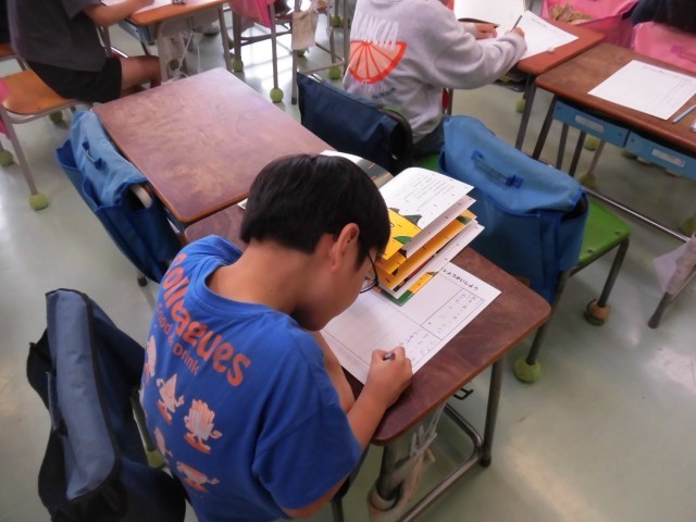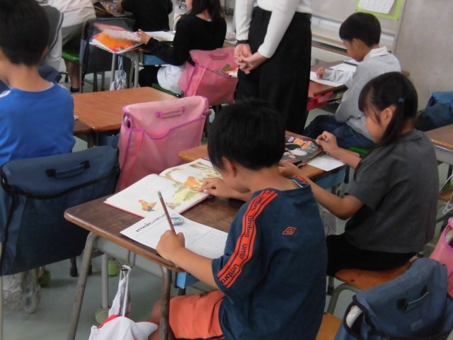 2年生の国語でおすすめの本を選び、紹介カードを作りました。それぞれ好きな本を持ち寄って、本の面白いところやおすすめポイントを文章で書きました。読んだ人に興味をもってもらえるように、じっくりと考えて、丁寧な字で書くことができました。イラストも入れて、仕上げる予定です。
