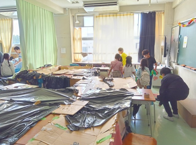 6年生有志もお店を出しています。謎解きゲーム、迷路、かめ丸トーク、お化け屋敷などなどです。廊下に待機列ができるほど混雑していました。6年生が張り切って運営しています。