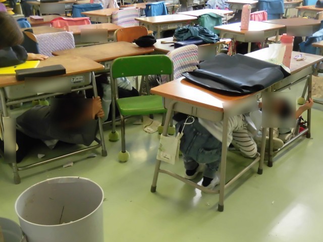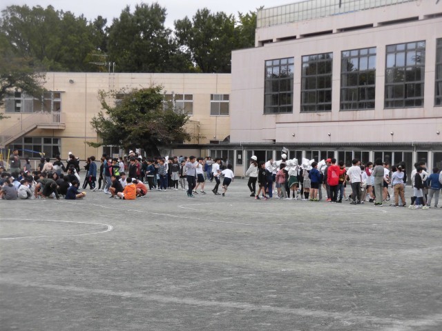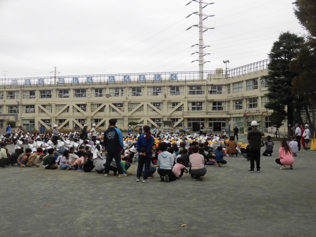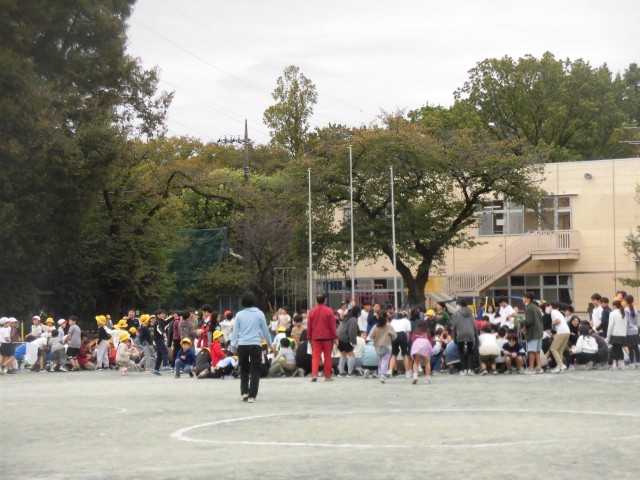 今日は、地震が発生したことを想定して避難訓練を行いました。中休みの時間で、校庭や屋上、廊下や階段など教室だけではなく、あらゆる場所で活動が行われていました。校庭では真ん中に身をかがめ、教室では机の下に隠れるなど、その場で安全な場所を見つけて避難行動をとり、揺れがおさまったタイミングで「おかしも(押さない・駆けない・喋らない・戻らない)」の約束を守り、校庭に避難しました。また、行方不明児童が発生したという想定でも訓練を行い、捜索するという教員の訓練もあわせて行いました。毎月の避難訓練で「自分の身を自分で守る」ことも意識し、安全に避難することを身につけます。