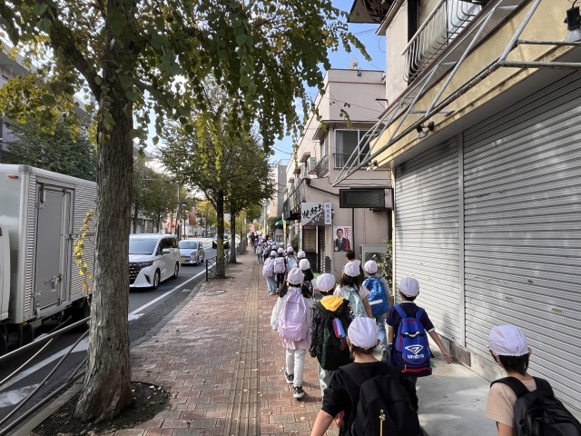 向ヶ丘遊園駅で電車を降り、生田緑地に着きました。あっという間でした。みんな、がんばって歩きました。