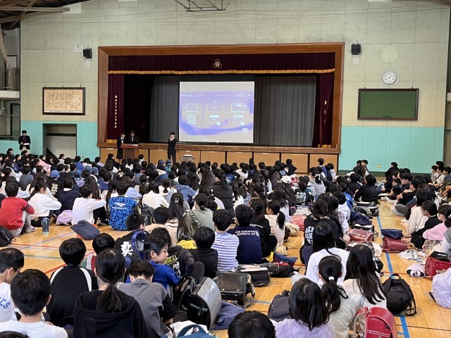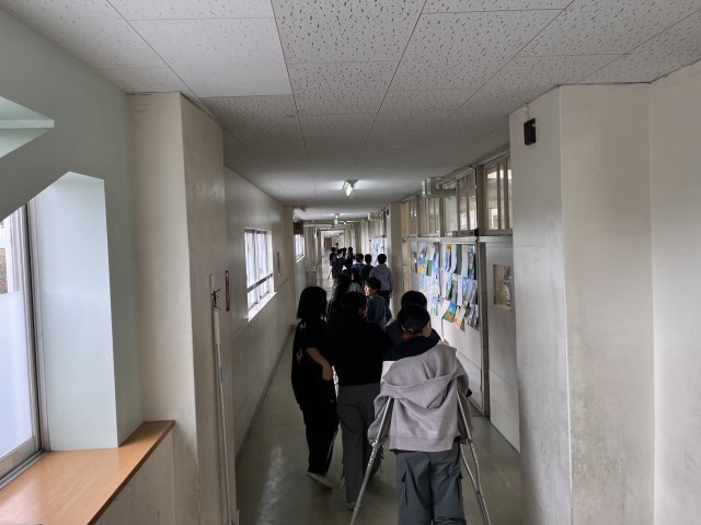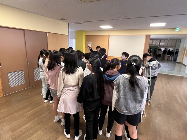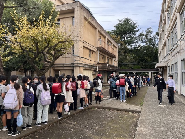 6年生が砧中学校を訪問して、中学校の生活や授業などの様子について、話を聞かせてもらったり見学したりしています。「中学校の階段は高い」「校舎が広い」といった声が聞こえてきます。