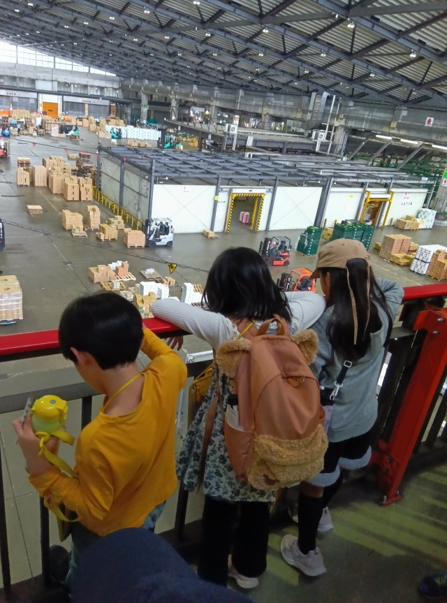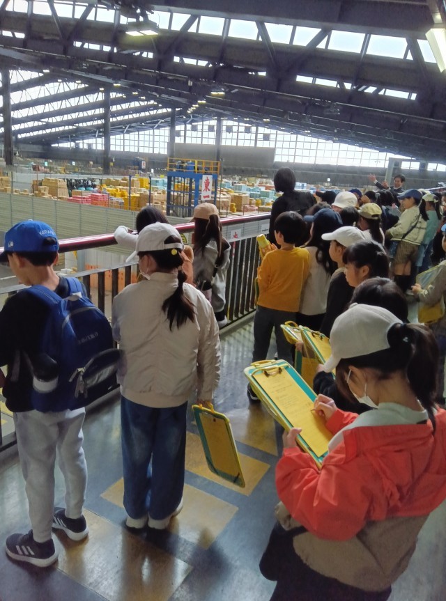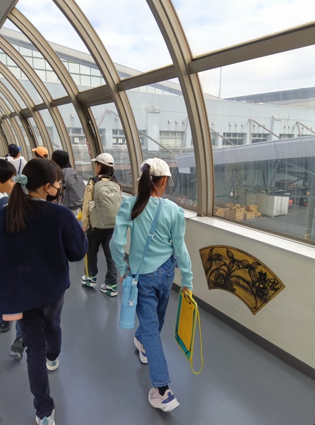 3年生、大田市場に到着しました。大田市場は、日本最大級の市場です。見学の流れについての説明を聞き、見学が始まりました。子どもたちは、「色々な果物のにおいがする!」「ここで働いてみたい。」などと話しながら見ています。気付いたことは、メモしています。