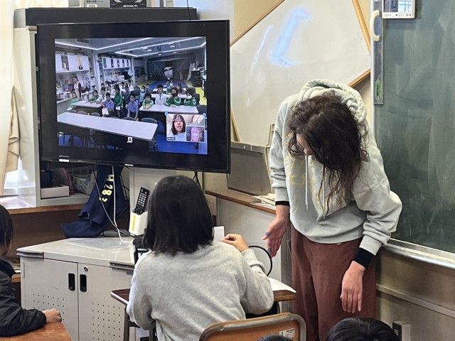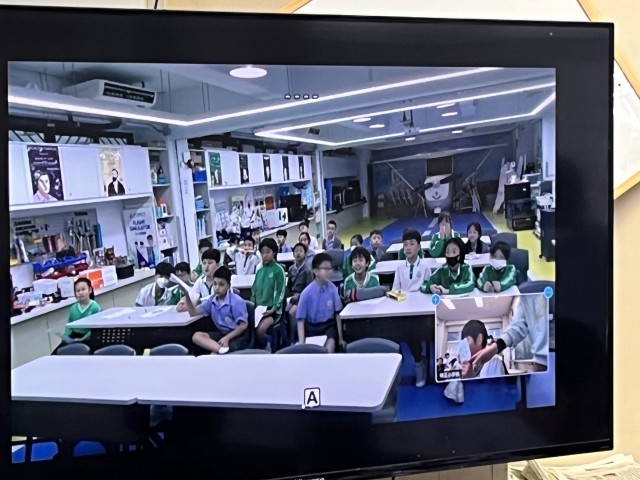 5年生が外国語の学習で香港の小学生5年生「香港の小学生と交流しよう」とオンラインで交流しました。香港の小学生から「日本のアニメやキャラクターについて知りたい」とリクエストがあったことから、今、学習している「My HERO」と関連させて、伝えました。知っているキャラクターが紹介されると「おーっ!」と歓声があがりました。