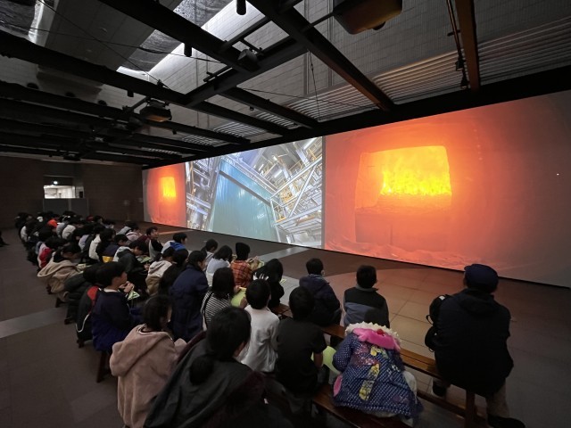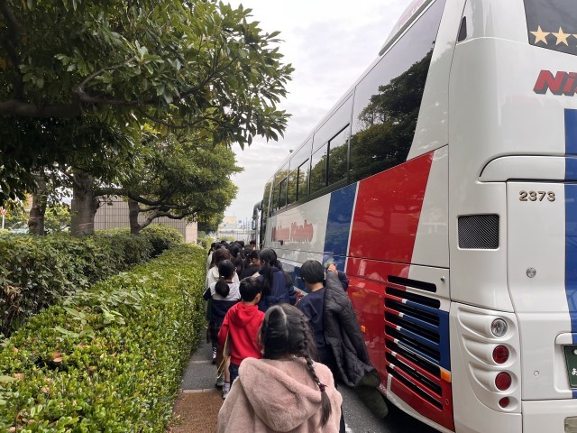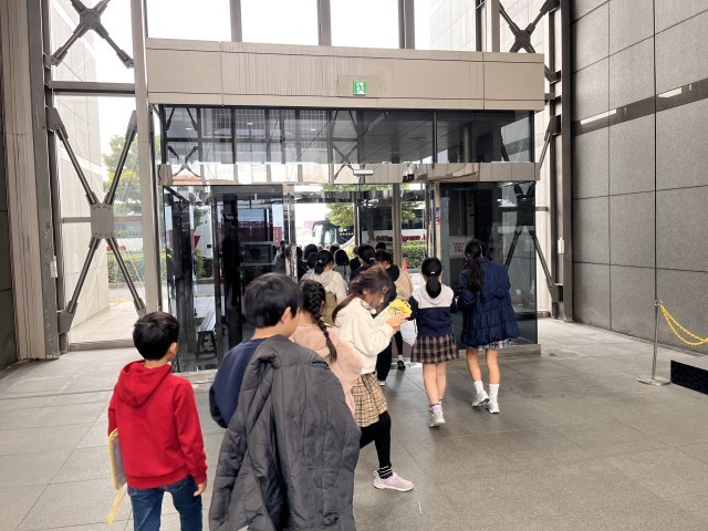 中央防波堤処分場に着きました。まず、ホールで説明してもらいました。