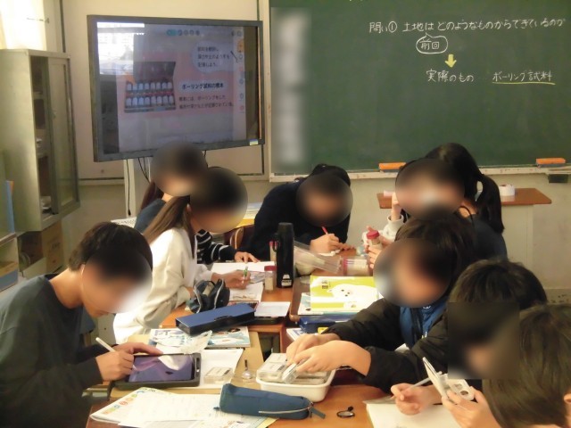 6年生の理科では「土地のつくりと変化」について学習しています。今日は明正小の「ボーリング試料」の観察を行いました。採取した地下の土であるボーリング試料により、地下の様子がどのようになっているのかノートやタブレットに記録しました。土の色や粒の大きさなどの違いを観察することができました。
