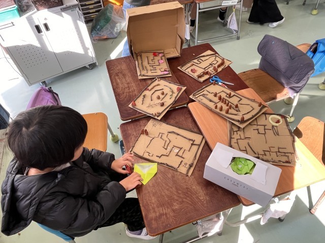 1年生の秋祭りでは、子どもたちの発想にとても驚かされました。6年生も訪れてくれて1年生も大喜びでした。