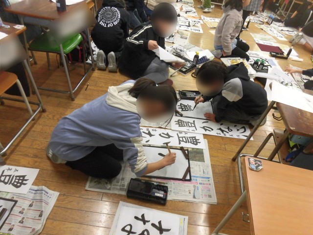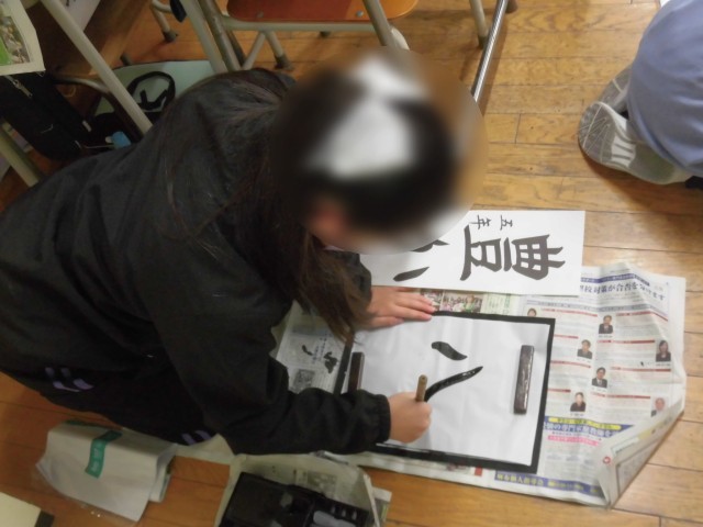 5年生が書き初めの練習をしています。「豊かな心」を毛筆で書きます。先生から教えてもらったポイントに注意しながら、くり返し練習しました。漢字とひらがなのバランスをとるのが難しく、苦戦している様子も見られました。お手本をじっくり見ながらゆっくりと筆を動かしました。落ち着いた空気に包まれ、集中して取り組みました。