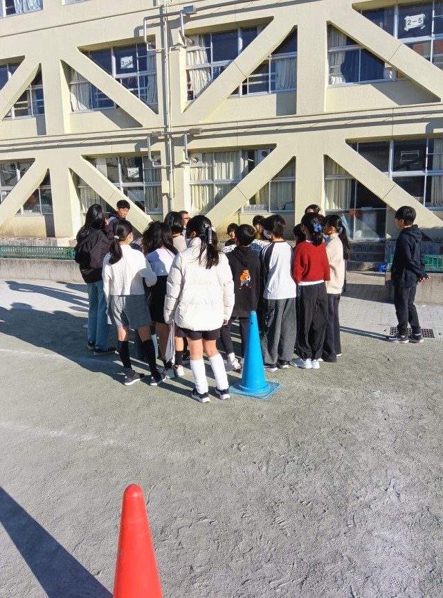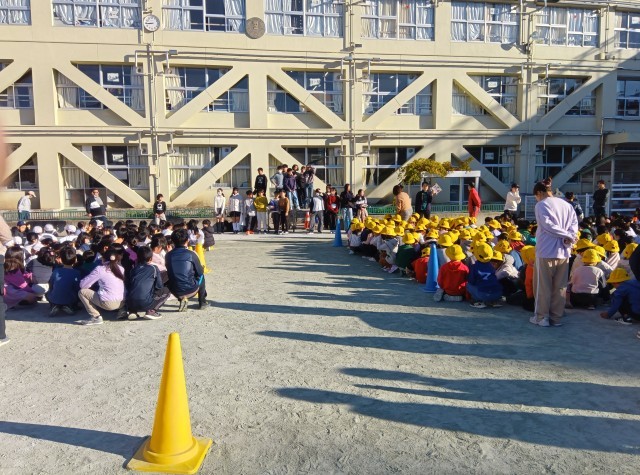 今日の児童集会は、校庭での全校冬◯☓クイズです。クイズを聞いて、◯は校庭右側へ、☓は左側へと移動します。集会委員の子どもたちが冬にちなんだクイズを事前に考えて司会進行し、活躍しました。冬の果物に関するクイズや今年の冬休みの日数など、工夫されていました。終わった後は、集会委員の子どもたちと担当の先生で振り返りをし、成果と課題を確認しました。また、3学期も全校児童が楽しむことのできる集会を企画してほしいです。