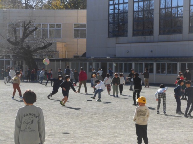 とても寒い冬晴れの空の下ですが、中休みの校庭から、子どもたちのにぎやかな元気な声がたくさん聞こえてきました。鬼ごっこ、ボール遊び、マラソン、大縄跳びなどをして楽しみました。子どもたちの熱気で、寒さを吹き飛ばしてくれたようです。