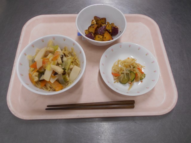 【献立】 牛乳 チャンポンめん もやしの中華あえ 大学いも